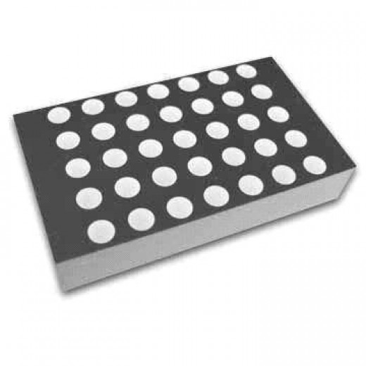 5x7 5mm Dot Matrix - Anot, içinde 35 adet ortak anotlu 5mm kırmızı LED bulunan bir dot matrix gösterge sistemidir.