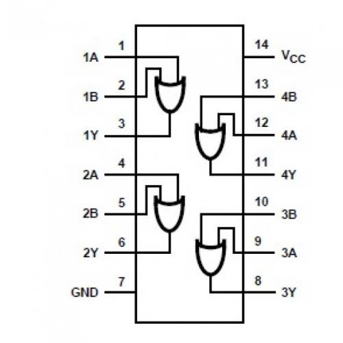 74HC32 - OR Gate is a 14-pin integrated circuit which contains four two-input OR gates.
