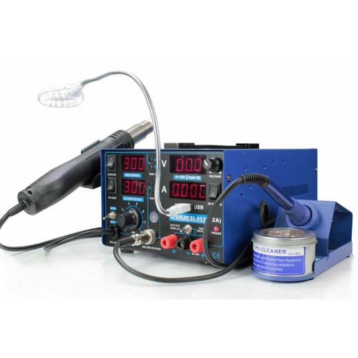 Innovative design welded soldering and SDM soldering station; Technical services with superior technological features are offered to the use of manufacturers. Compact and ergonomic design, maximum safety: With 4-digit digital LED display for reading millimeter amps and an extra 5 V USB output, Adjustable 30V / 5A DC power supply, hot air station and soldering station. The soldering station with all three functions required for all routine repair and repair services provides ease of use with its ergonomic design. The functions integrated into the chassis can operate independently of each other thanks to the "Dual-core processor".