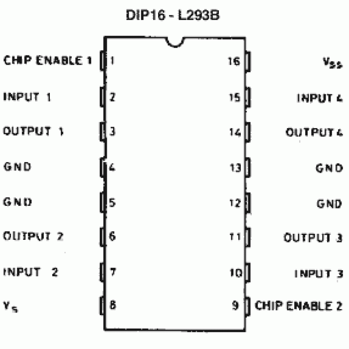 L293B - Push-Pull Four Channel Driver is a 16-pin 2-channel motor driver integrated circuit. It can supply a motor with 1.2A current with operating voltage between 5V-36V. L293B - Push-Pull Four Channel Driver has 2A stall current.