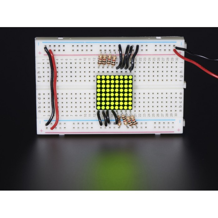 Minyatür 8x8 Sarı-Yeşil LED Matrix standart bir LED matrisin sahip olduğu bütün özelliklere sahiptir. Ancak bu standart matrislere göre daha küçüktür. Matris içerisinde 64 sarı-yeşil renkli LED bulunmaktadır ve LEDler plastik bir gövde içerisine sabitlenmiştir. LEDler 8x8 matris oluşturacak şekilde dizilmiştir. LED matrisin yan tarafında 0,1 inç aralıkla dizili 16 adet pini bulunmaktadır. Bu pin aralığı sayesinde matrisi breadboard üzerinde kullanmak mümkündür.