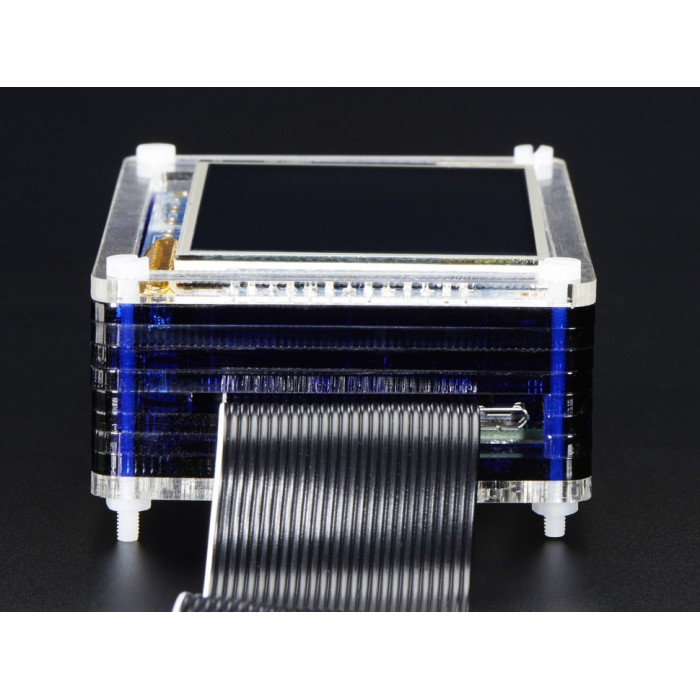 PiTFT Pibow kit for Raspberry Pi Model B Computer is crafted out of ten unique layers which assemble to make a strong and attractive home for your precious Pi. Each layer is laser cut from colorful high-quality cast acrylic and once stacked they securely contain a Raspberry Pi while leaving the primary ports, including the CSI camera port, accessible.
