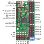 Because Pololu Mini Maestro 24 -Channel USB Servo Controller’s channels can also be used as general-purpose digital outputs and analog or digital inputs, they provide an easy way to read sensors and control peripherals directly from a PC over USB, and these channels can be used with the scripting system to enable creation of self-contained animatronic displays that respond to external stimuli and trigger additional events beyond just moving servos.