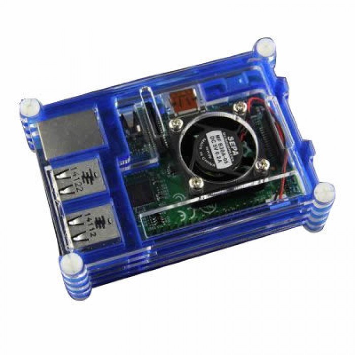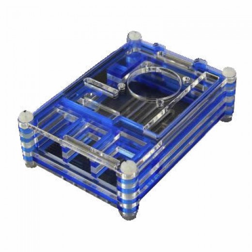 Produced in a transparent-blue color 9 layer plexiglass, this stylish housing box is compatible with the Raspberry Pi B + / 2/3 models. Cutouts are available on the top plate allowing connection to the CSI, DSI and GPIO connectors. Because the product is layered, it can not be used with heat sink.