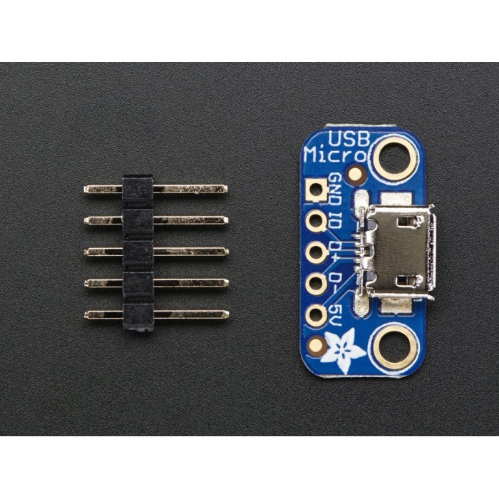 Tamamen monte edilmiş ve test edilmiş mikro B breakout PCB'si ve 0.1 " header ile birlikte gelir, böylece üzerine lehimleyebilir ve bir breadboard üzerine takabilirsiniz.