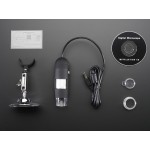 Package comes with a USB microscope with 4.5ft/140cm long cord and a small adjustable stand.