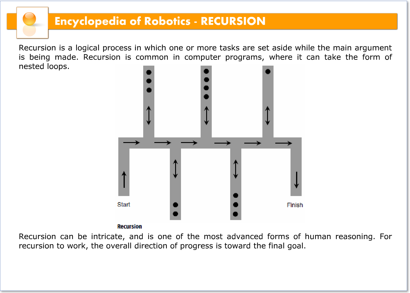 If a computer uses recursive logic and gets sidetracked too much, it might lose sight of the final objective, or go around and around in logical circles. When this happens in a computer program, it is called an endless loop or an infinite loop. This is makes it impossible to solve any problem.