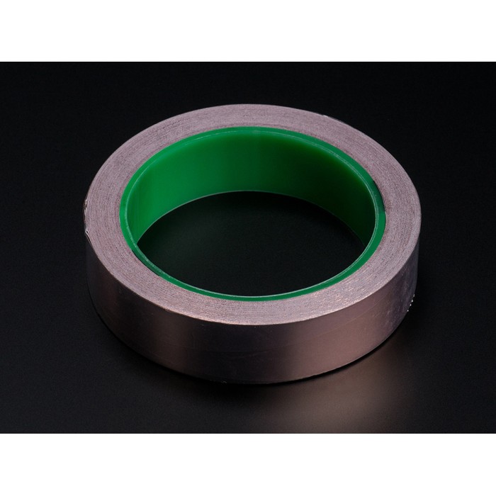 Copper Foil Tape wth Conductive Adhesive - 25mm x 15 meter Roll can be an interesting addition to your toolbox. The tape itself is made of thin pure copper so it’s extremely flexible and can take on nearly any shape. You can easily solder to it, and the tape itself can carry current just like a wire. On the back is an electrically conductive adhesive. The adhesive can't carry significant current but it is very handy for sensing applications where you don't want to solder the copper tape.