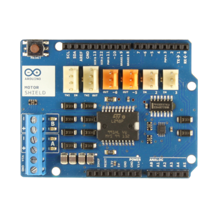Arduino Motor Shield is based on the L298, which is a dual full-bridge driver designed to drive inductive loads such as relays, solenoids, DC and stepping motors. It lets you drive two DC motors with your Arduino board, controlling the speed and direction of each one independently. You can also measure the motor current absorption of each motor, among other features. The shield is TinkerKit compatible, which means you can quickly create projects by plugging TinkerKit modules to the board.